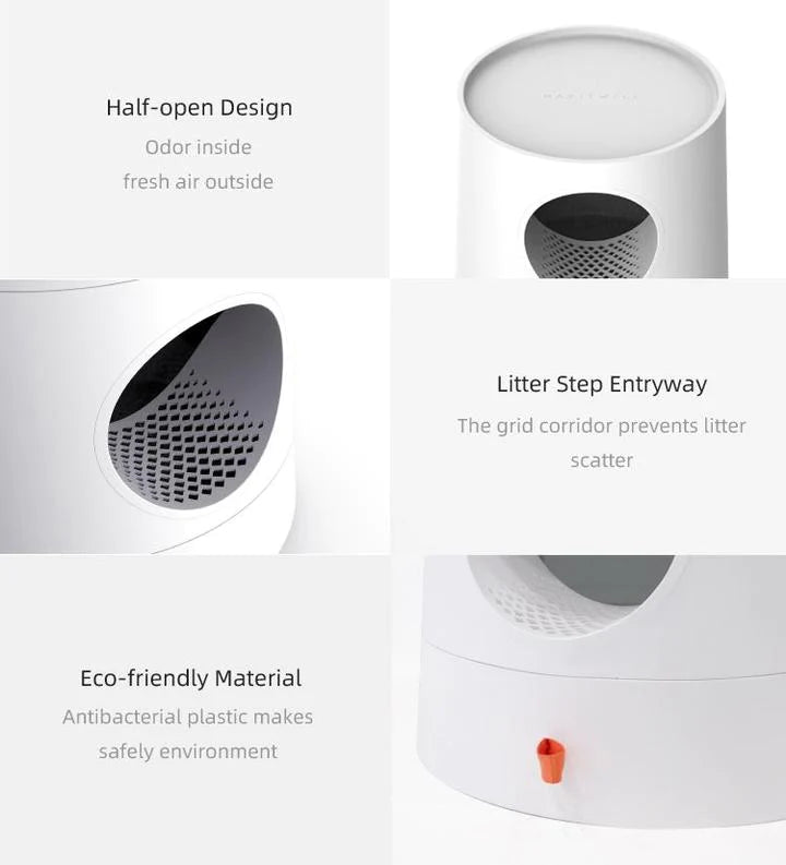 - The scratching pad on top satisfies your cat's need to play and scratch. Includes a scoop for sifting and cleaning litter.