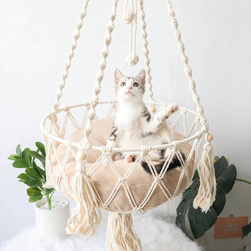 - This boho swing is made from 100% brand new natural high-quality cotton rope, non-toxic and odorless, without any harm to you and your kitty.