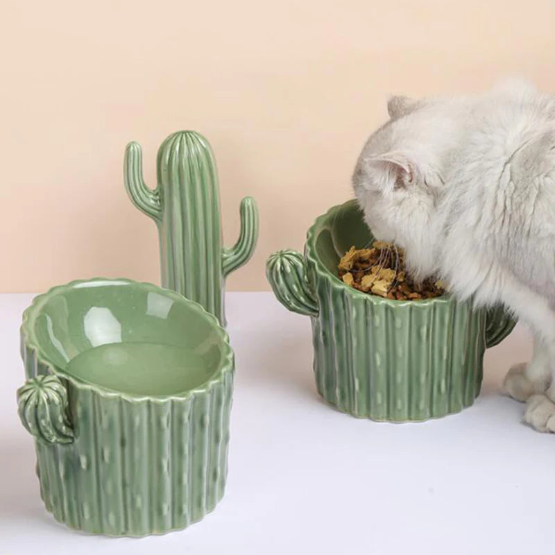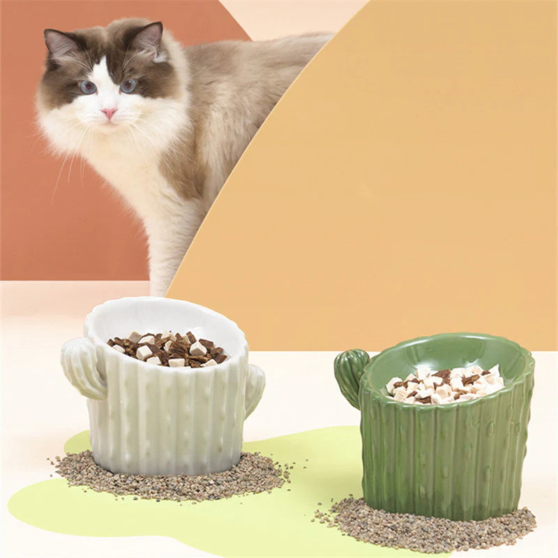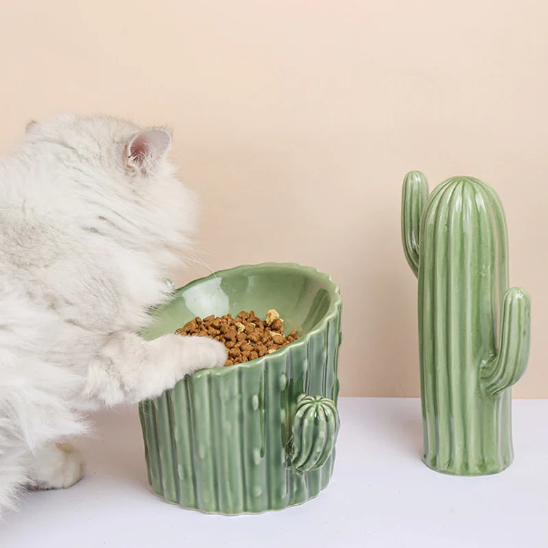 Cactus Shaped Elevated Cat Bowl