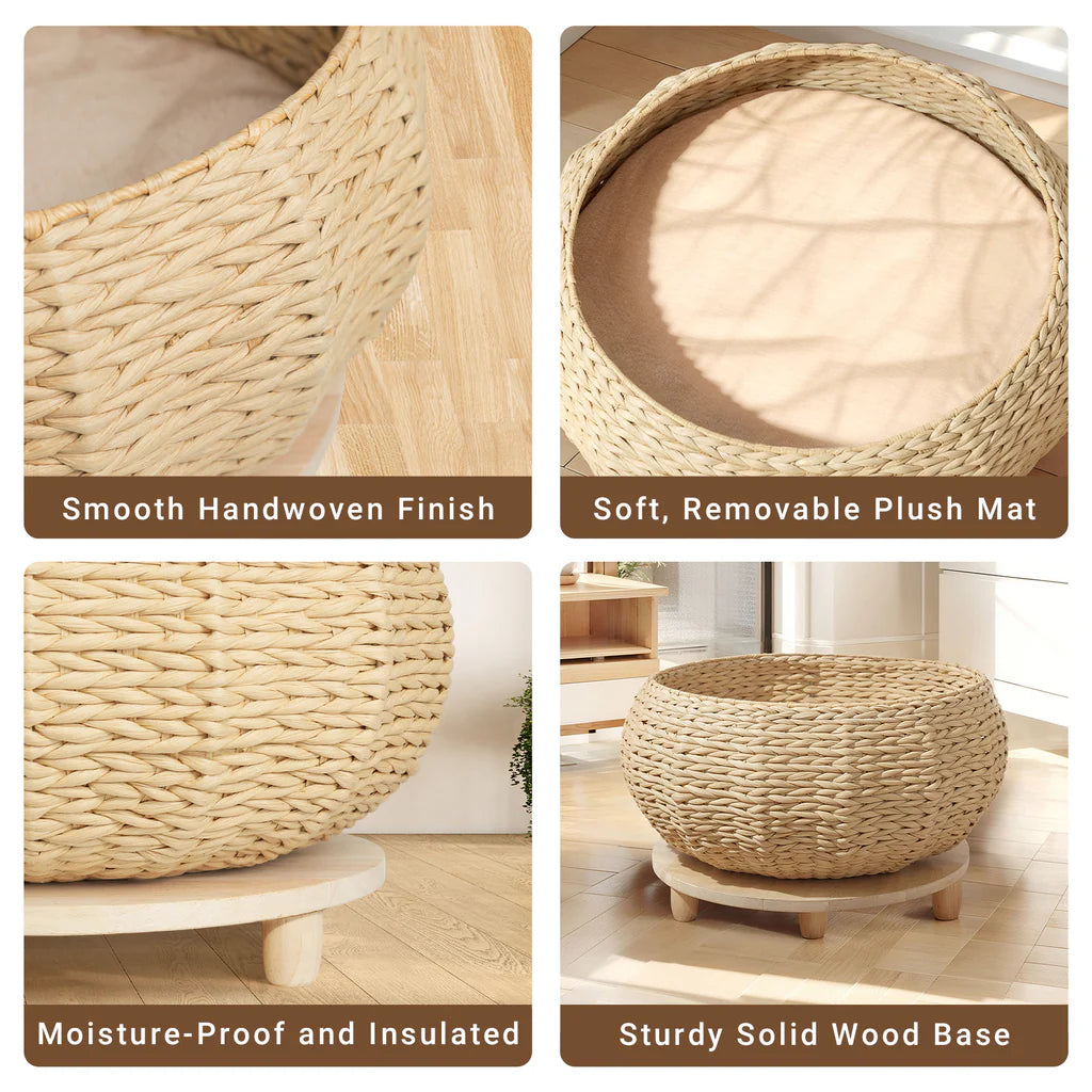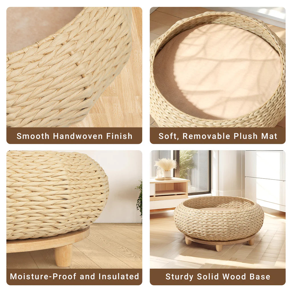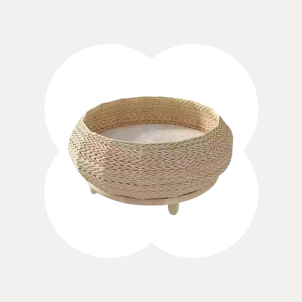 Handwoven Rattan Wood Cat Bed