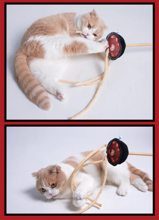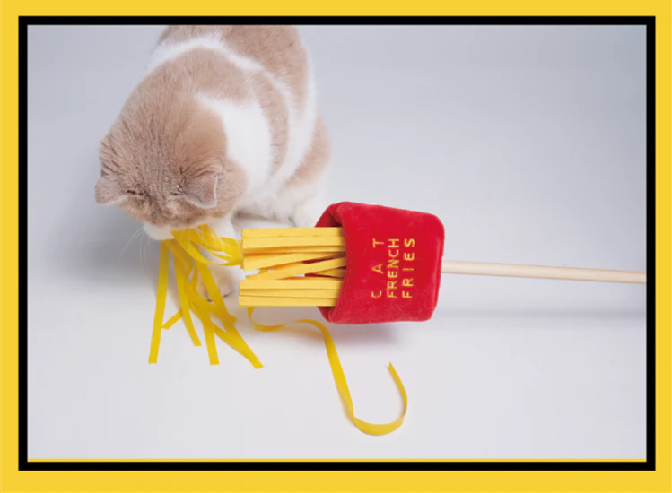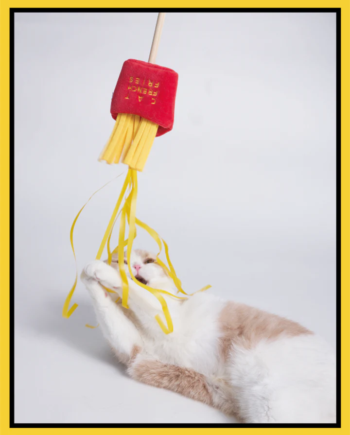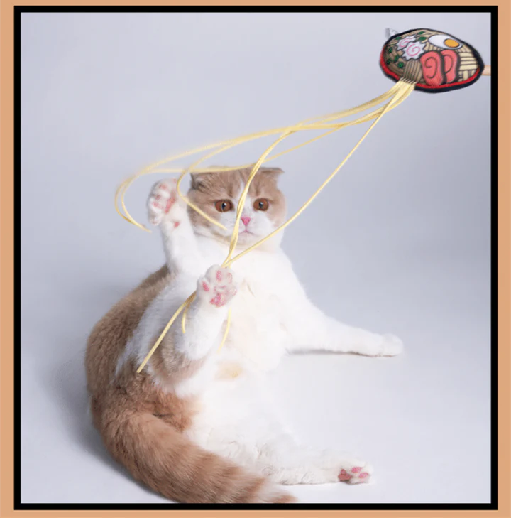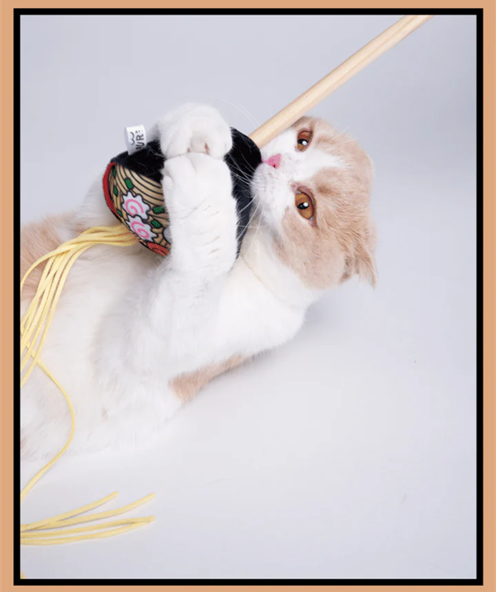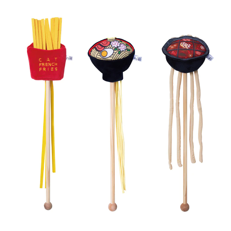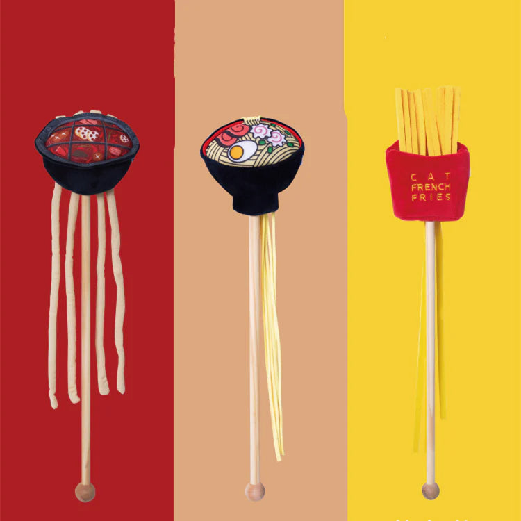 - We have your favorite foods on a teaser stick for your kitties — French Fries, Ramen Noodles, and Mala Hot Pot.