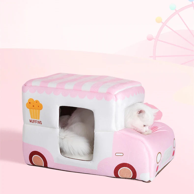 - Dessert Truck Shaped Cat House with a closed design creates a good sleeping environment.