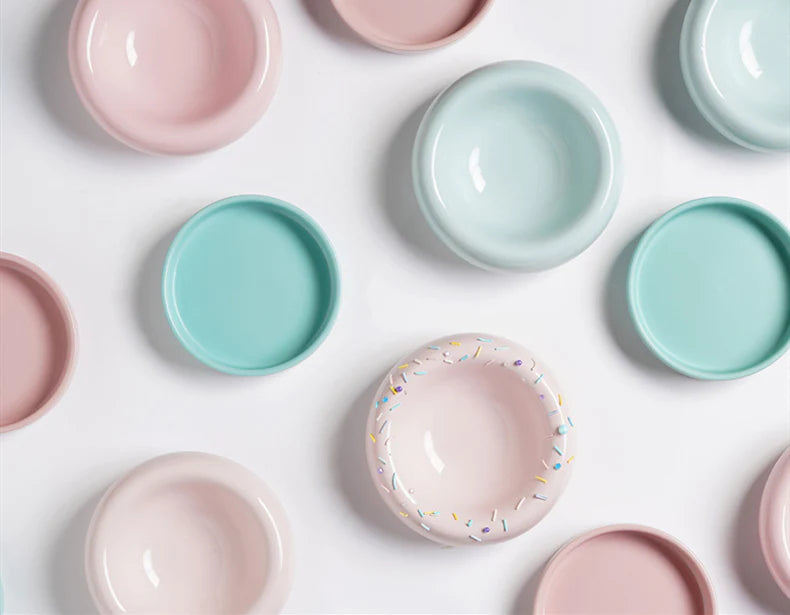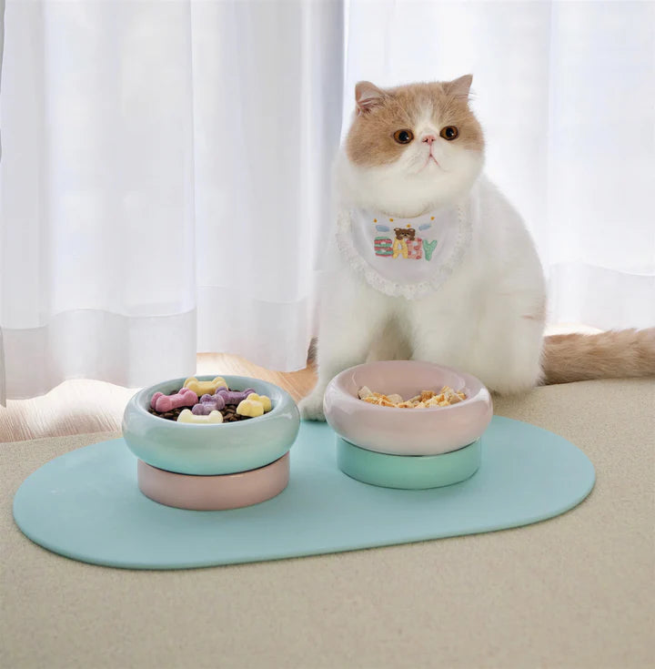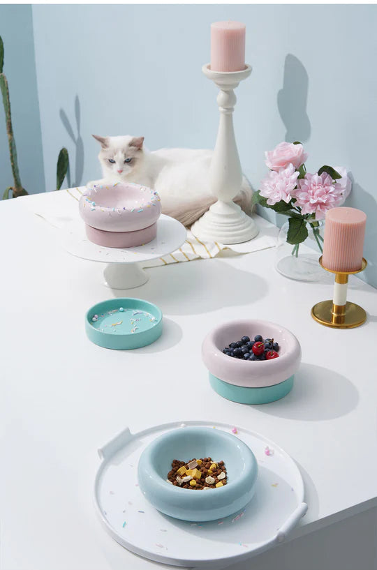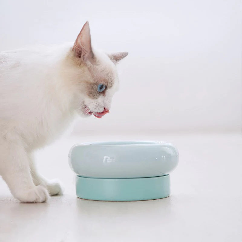 3-in-1 Donut Shaped Ceramic Raised Stand Easy Clean Design Pet Feeding Bowl for small-medium cats, specially designed for Exotic Shorthair Cat.