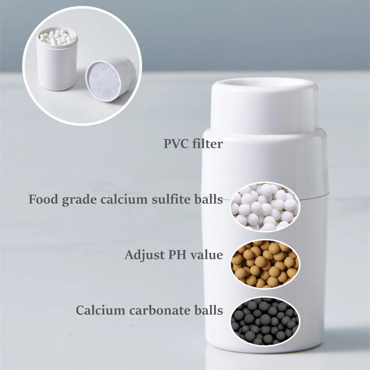 - 4-LAYER PURIFICATION– We use PVC filter layers to filter impurities, food-grade calcium sulfide to purify water, medical stones to balance PH value, and ceramic carbon balls to absorb impurities and soften water quality.