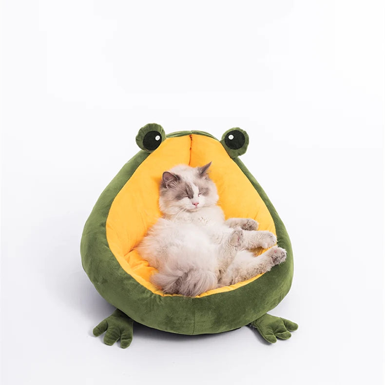 - This frog-shaped pet house is a cute, beautiful, perfect match to various home environments and a sleeping bed for kittens and puppies to play on.