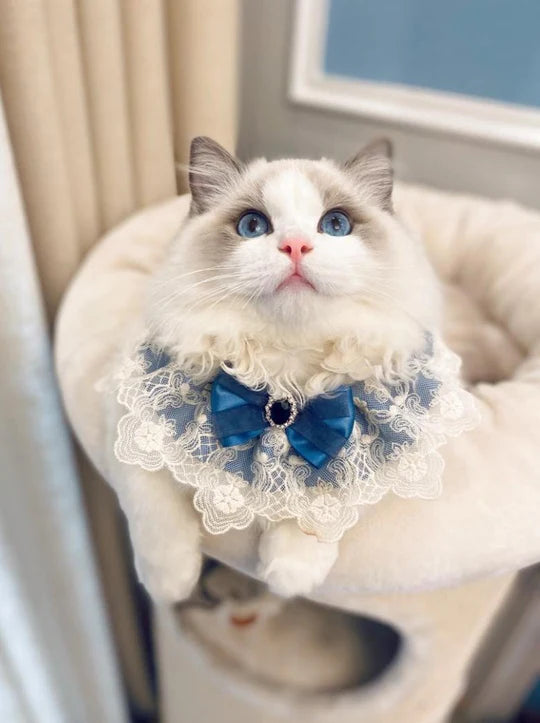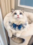 - 【Unique Design】Multi layer lace with cute blue bowknot as an ornament gives a lovely look to your beloved pet.100% handmade, makes your pet look as elegant as a little princess.
