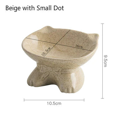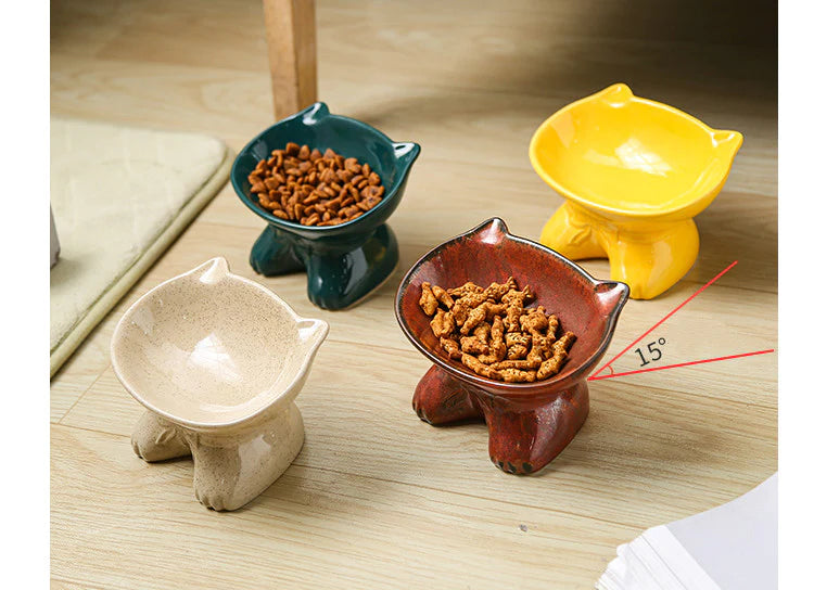 - The raised height allows the cat to eat at a better position, makes sit and eat quite comfortably, helps swallow more easily, alleviates cat's neck burden and lowers pressure on joints.