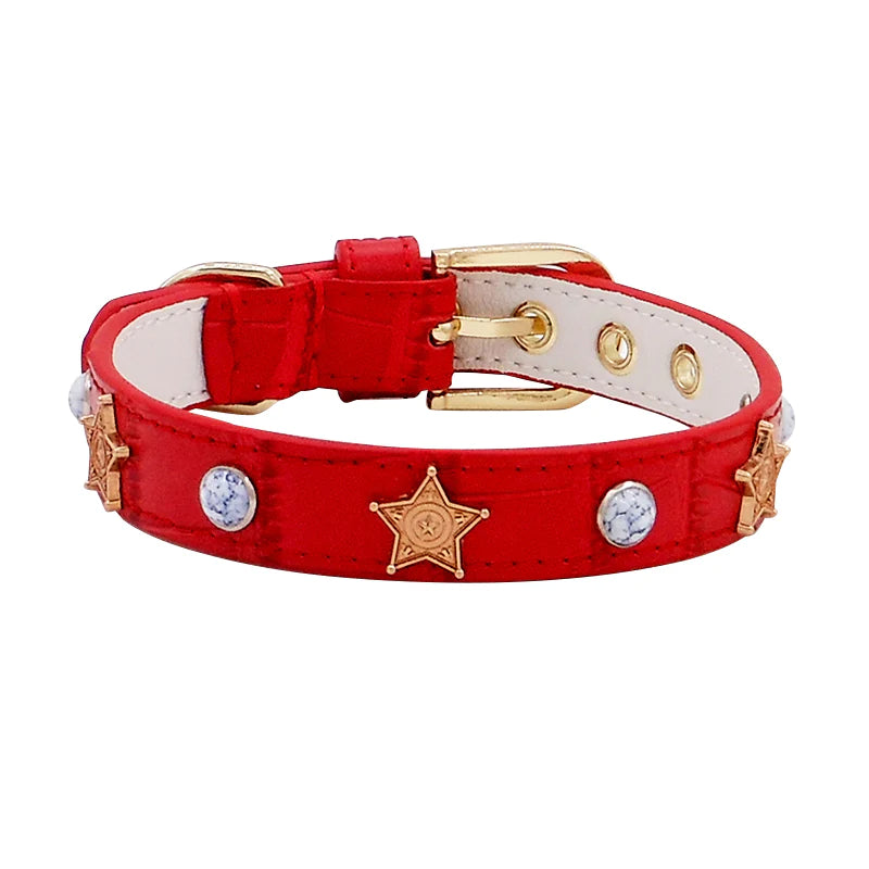 Hand Made Leather Star Pet Collar