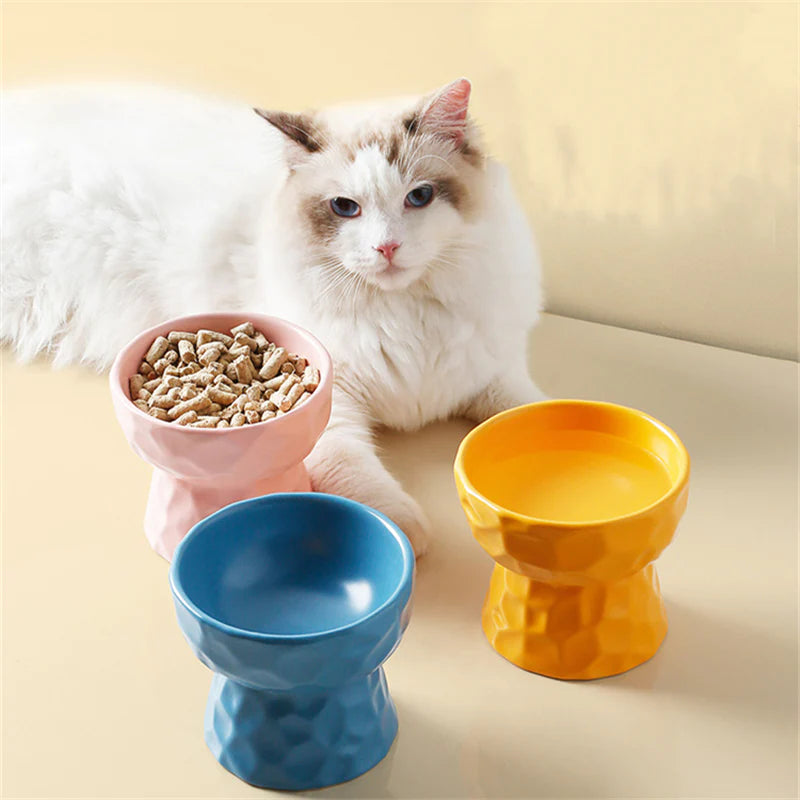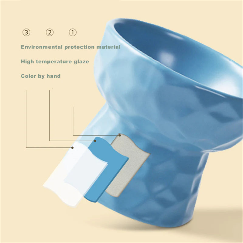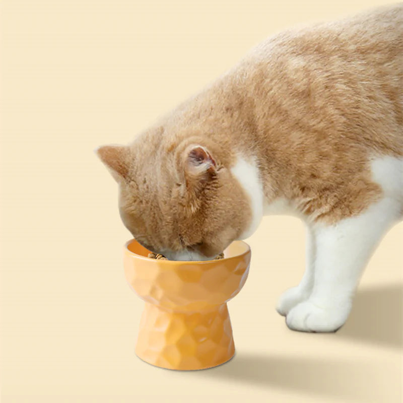 - The right height allows the cat to eat at a better position, makes sit and eat quite comfortably, brings whisker relief and helps swallow more easily, alleviates the cat's neck burden, and lowers the pressure off joints, further promoting the health of the cat's digestive system.