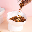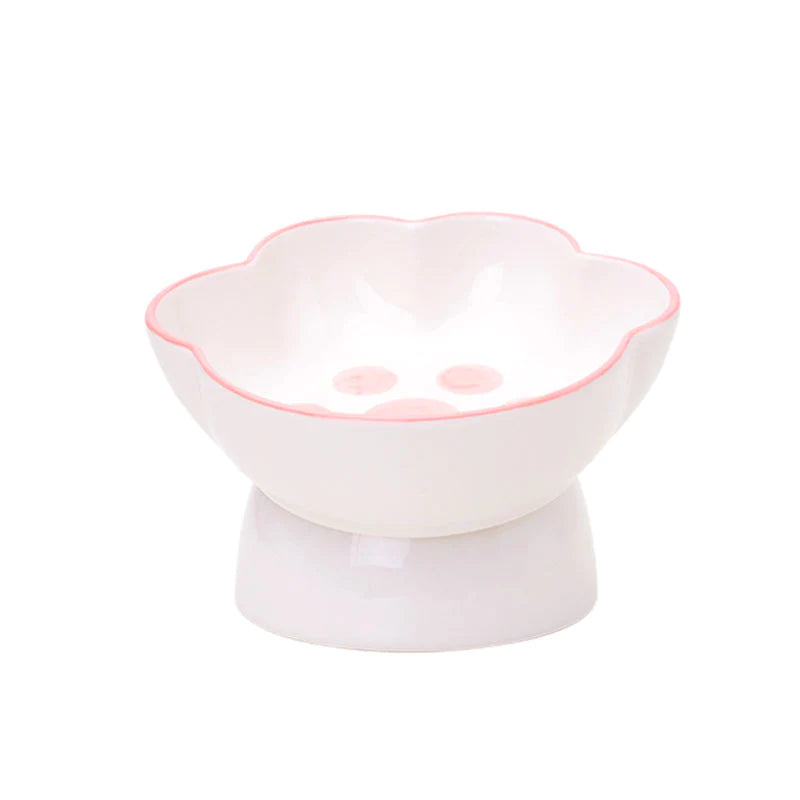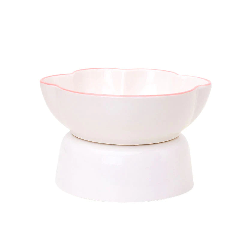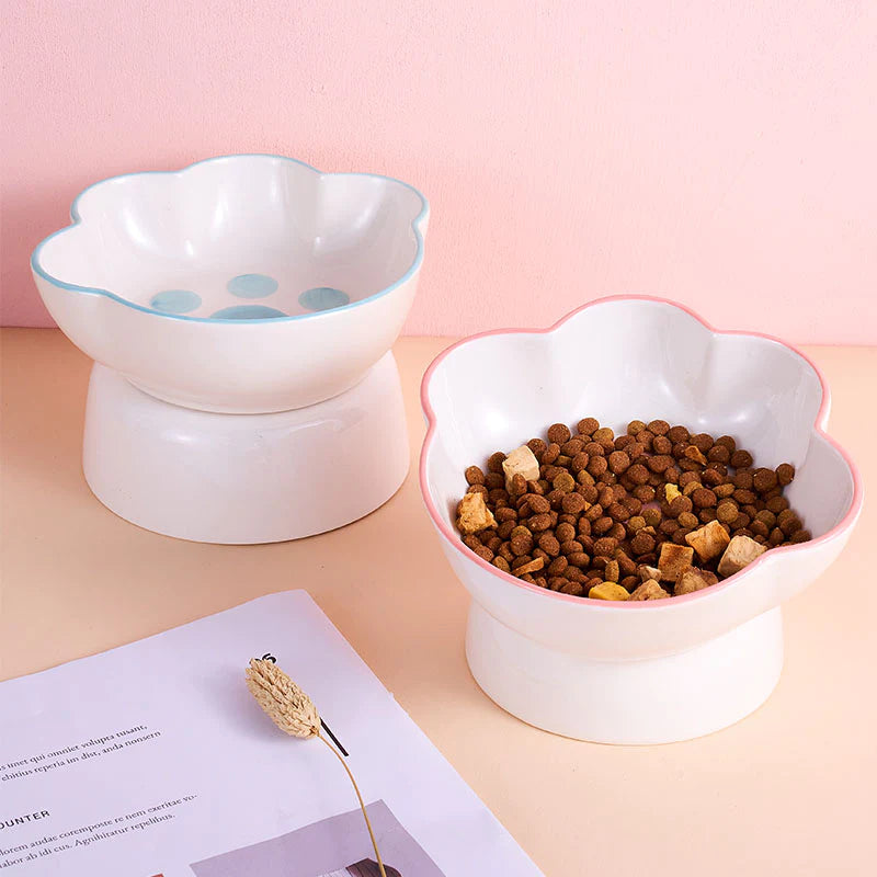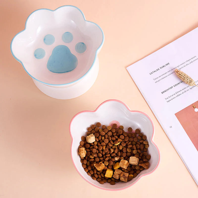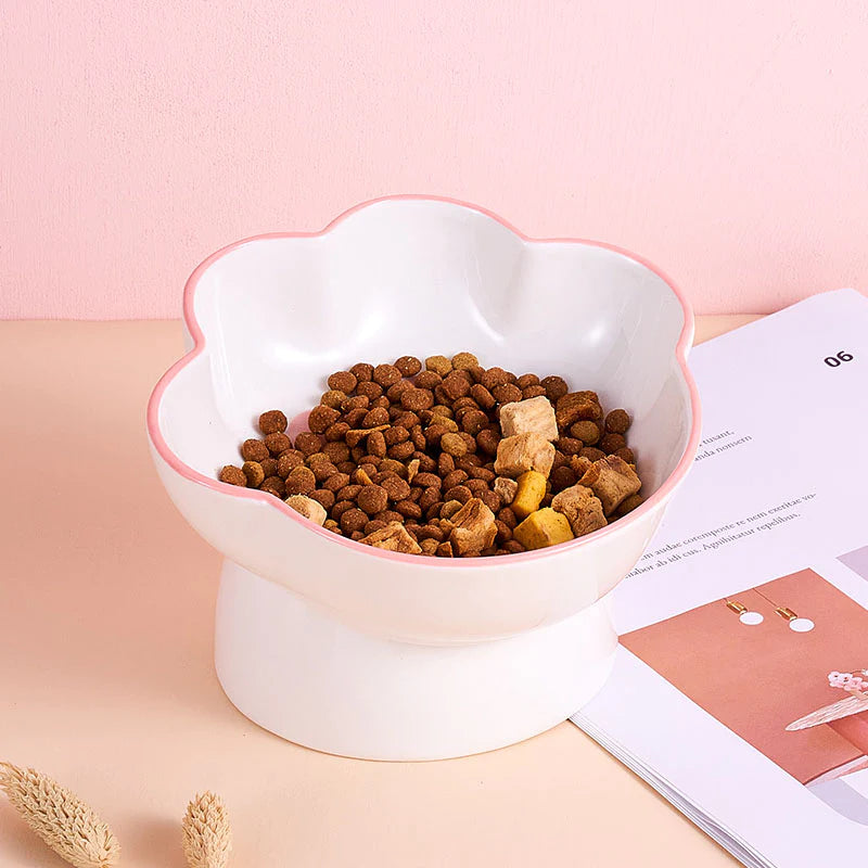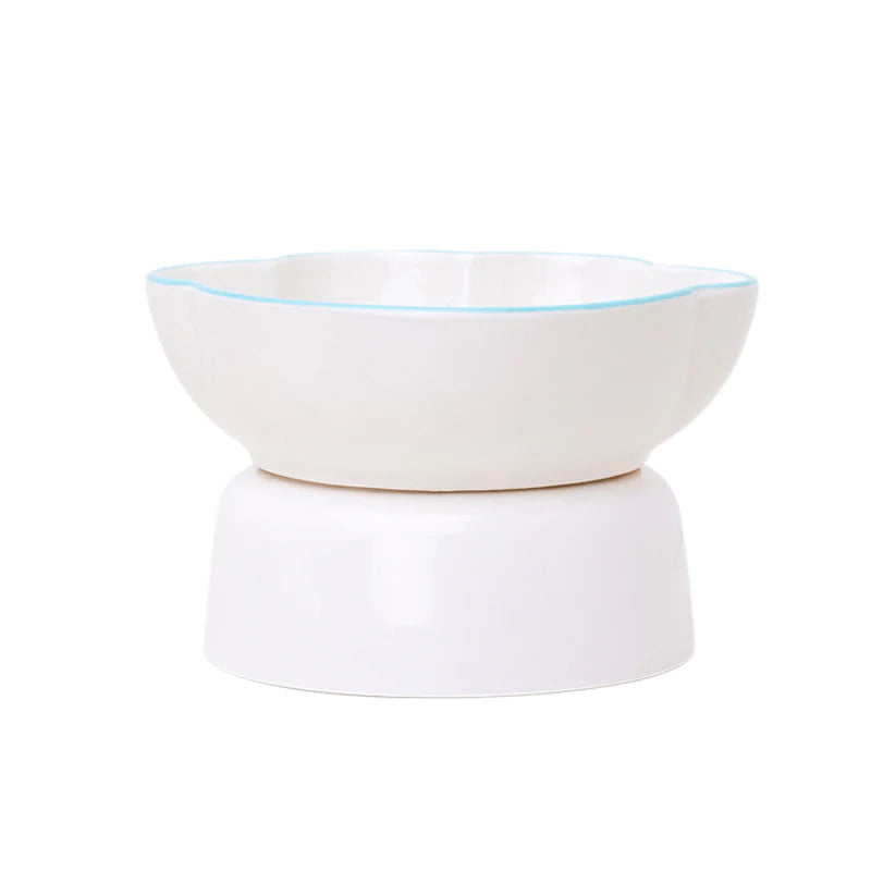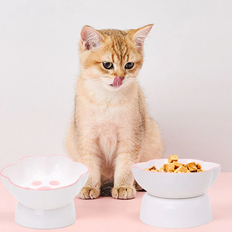 - Raised Base: The ceramics base raises the cat food and water bowl set to a more convenient height, your cat could comfortably eat and drink without having to strain his neck down, it also helps to protect the cat's spine. Perfect for aging cats.