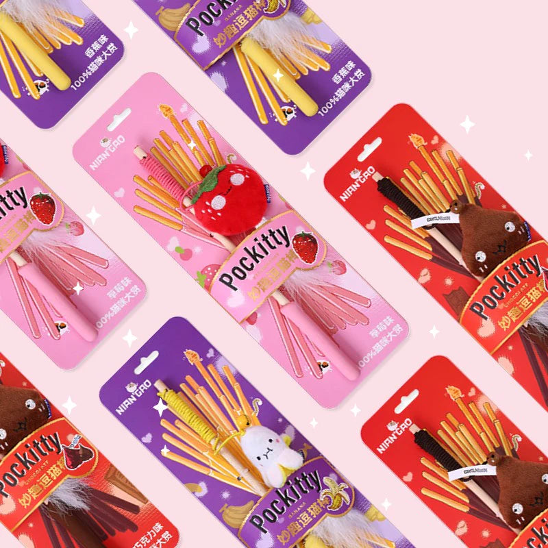 - The idea comes from Pocky with strawberry, banana, and Kisses chocolate flavors. Even humans would like to take a bite, not to mention yours, little fluffy baby.