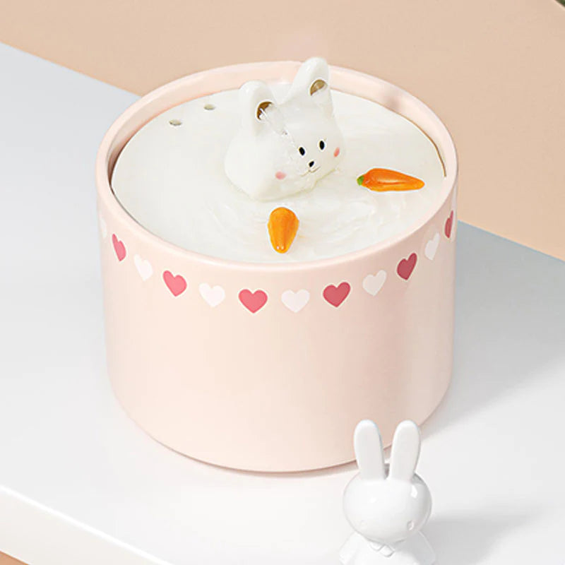 - Rabbit Automatic Power Off USB Drinking Fountain is a cute cat water fountain with a steady flow of filtered water.