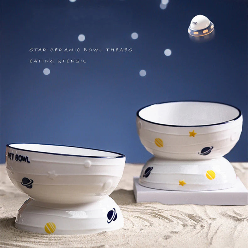 Starry Sky High Foot Cat Bowl